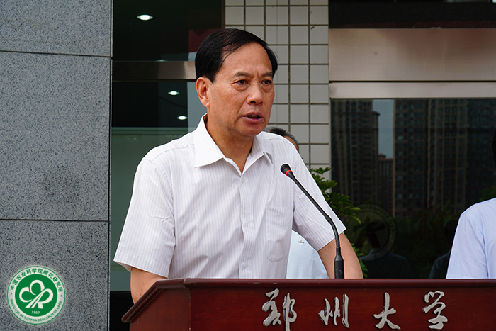 陈萌山在致辞中指出,中棉所与郑州大学合作共建农学院,是我院贯彻落实“三个面向”、扎实推进“两个一流”、实现 “整体跃升”的具体举措和实际体现,也是我院和河南省科研教学事业发展历程中的一件盛事,对落实国家“乡村振兴”发展战略、推动河南从农业大省向农业强省转变意义重大。他希望双方充分发挥平台优势,加强协同创新,强化顶层设计,优化学科布局,创新体制机制,建立长效发展的科教融合机制,把学院办出实效,建成农业高层次人才的聚集地,助推河南乃至全国农业发展。此外,刘炯天院士介绍了郑大农学院成立的相关背景和重要意义;农业农村部科技教育司副司长汪学军、蒋笃运分别致辞,肯定了学院成立的重要意义,并对学院的发展表示期望。