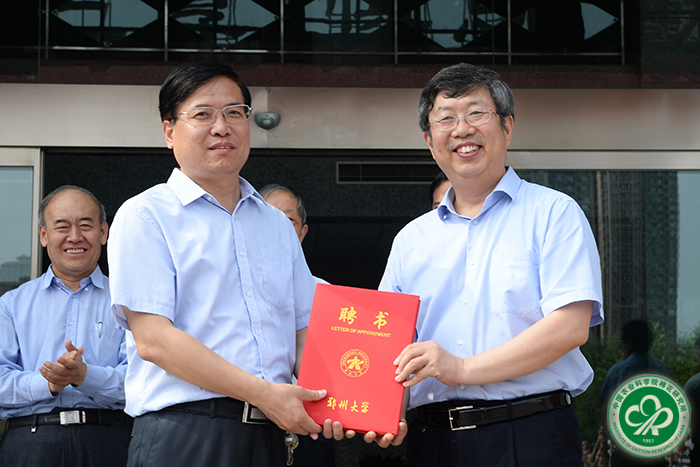 2018年7月7日上午,郑州大学农学院成立暨发展论坛在我所郑州科研中心举行。中国农业科学院党组书记陈萌山、河南省人大常委会原副主任蒋笃运、中国工程院刘旭院士与郑州大学校长刘炯天院士共同为郑州大学农学院揭牌。仪式由郑州大学副校长屈凌波主持。刘炯天院士为我所所长李付广颁发郑州大学农学院首任院长聘书。