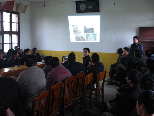 2013年4月2日,栽培研究室李亚兵副研究员在湖北大垸农场进行棉花轻简化栽培技术指导与培训