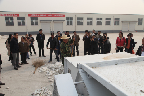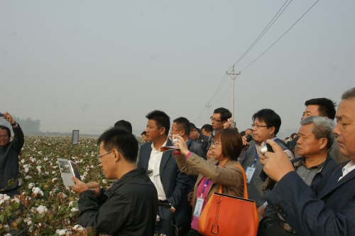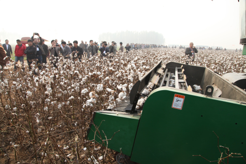 此次现场会采用了我所科技人员研发的适合机采的棉花新品种(新品系)、棉花全程机械化标准化生产新技术和农业部南京农业机械化研究所研制的国产新型采棉机,实现了农艺农机融合,示范田亩用工5个以内,采净率达到93%,亩产子棉达到300公斤的高产水平。同时,此次机采棉的试采成功,标志着在黄河流域和长江流域棉区,能够用机器代替人工进行全程机械化生产,劳动力成本大大降低,植棉的比较效益上升,有利于保障我国棉花生产的可持续发展。