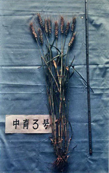 中育3号(89中109)系本所小麦研究室选育。1984年以大面积推广的高产品种泰山1号、百农3217与国外引进的抗病、抗逆力强的材料NS2574复合杂交而育成,该品种基本上保留了三亲丰产抗病的主要优点。1994年通过河南省农作物品质审定委员会审定。
