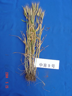 中育9号系本所小麦玉米研究室于1995年用豫麦21号与南京农业大学抗病的簇毛麦后代92R139进行杂交,经6年选育而成。该品种基本上保留了双亲丰产抗病的主要优点,同时也克服了双亲各自缺点。2004年通过河南省农作物品种审定委员会审定。